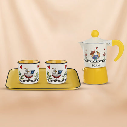 Egan Cocorico Yellow Moka Coffee Maker Set With 2 Mini Mugs & Tray