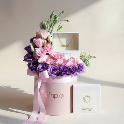 قلادة “دارلينغ” المميزة مع علبة زهور أنيقة - هدية مثالية للأناقة والحب