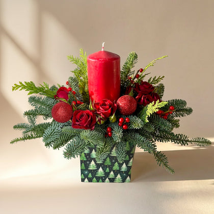 باقة ورد حمراء فاخرة ومجموعة شموع وودويك برائحة التوت القرمزي