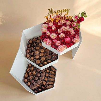 Exquisite Birthday Celebration: Dual-Color Rose & Gourmet Chocolate Box
