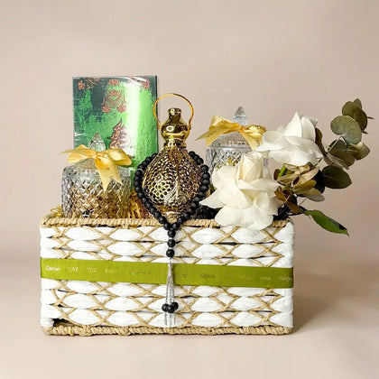 مجموعة أمنية رقيقة للهدايا الرمضانية مع الزهور الفاخرة وعطر شغف عود أسود