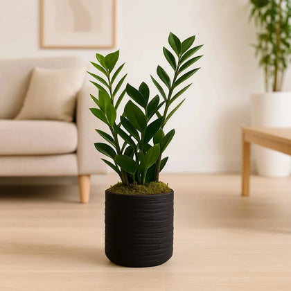 نبات زي زي الأنيق في وعاء أسود أنيق - مثالي للمساحات العصرية