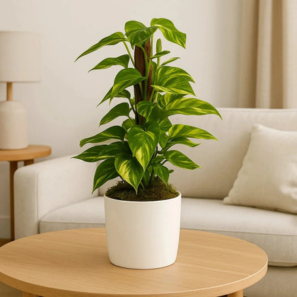 نبات ZZ الأنيق في وعاء بلمسة نهائية من الرخام الأبيض - سهل العناية