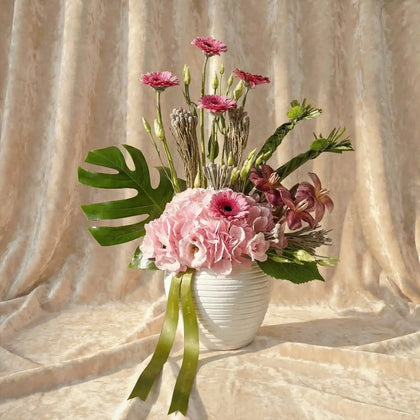 تجد لدينا باقات الكوبية هايدرينجيا المتنوعة والمميزة باللون الأبيض والوردي وغيرها وهي تضفي لمسة من النضارة والأناقة على المكان.