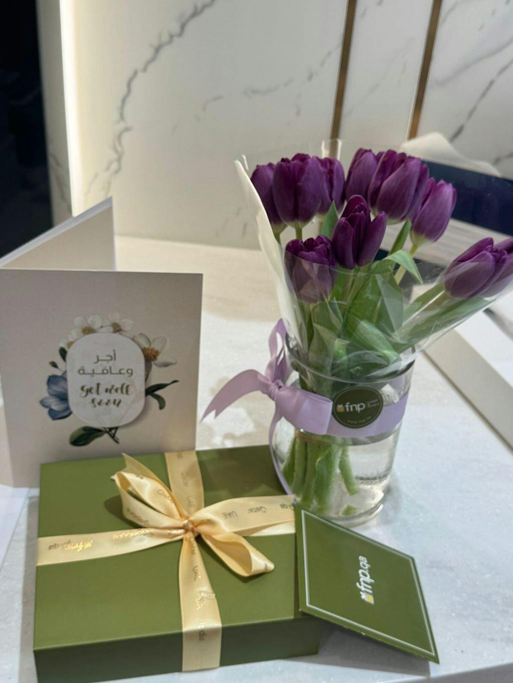- عدد زهور التوليب: 10 زهور توليب أرجوانية طازجة، ترمز إلى الرشاقة والأناقة.