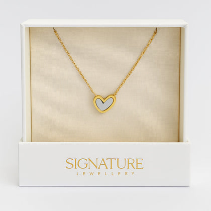 Luxe Mother of Pearl Heart Necklace by Signature Jewelry - Timeless Elegance