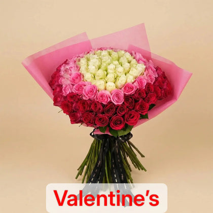 Majestic Symphony of Roses: White, Pink & Dark Pink Elegance