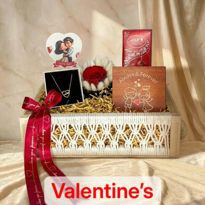Eternal Rose Bouquet & Gold Interlocking Hearts Necklace Gift Set