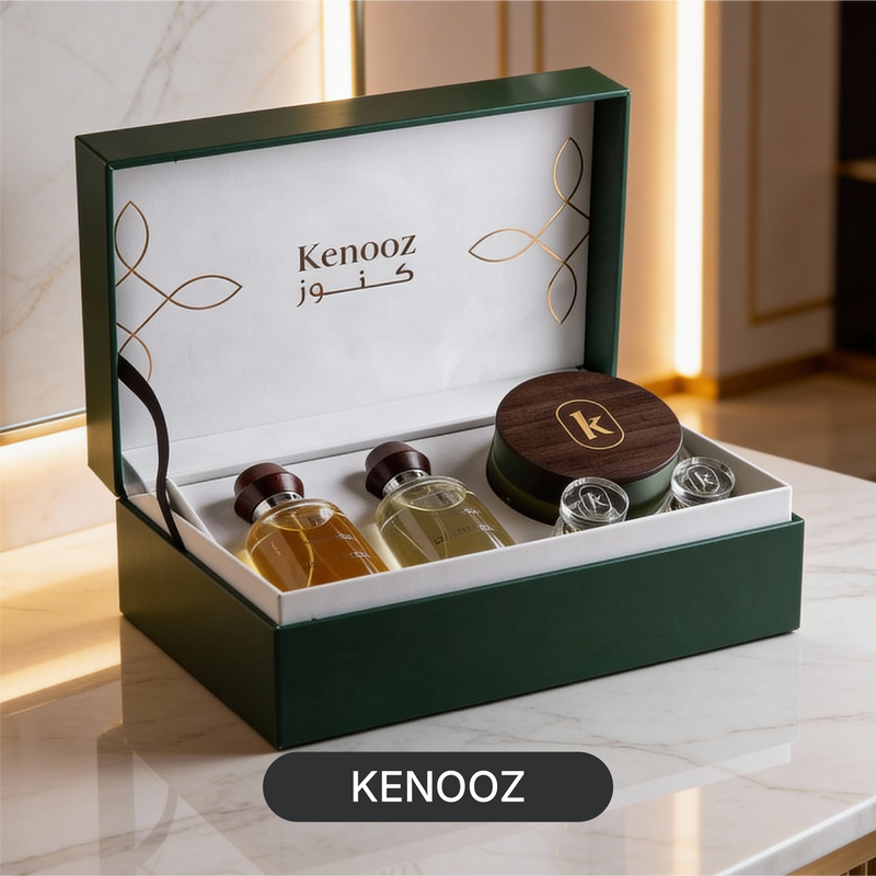 Kenooz Aroma Box | Luxurious Green Leather Perfume Set for Ramadan