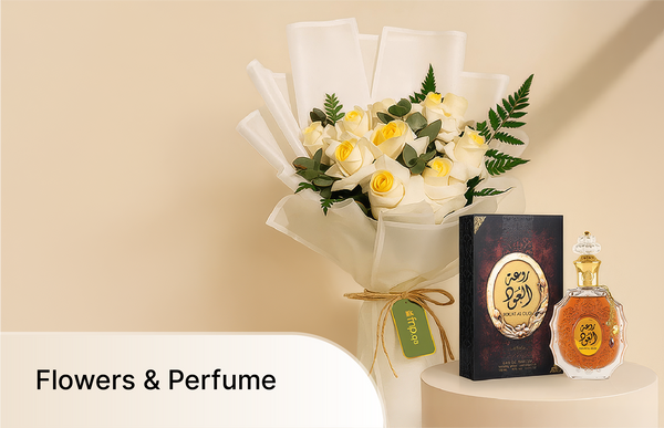 Scented Bloom Symphony: Luxurious Red Rose Bouquet with Aayah AL Maghribi Perfume